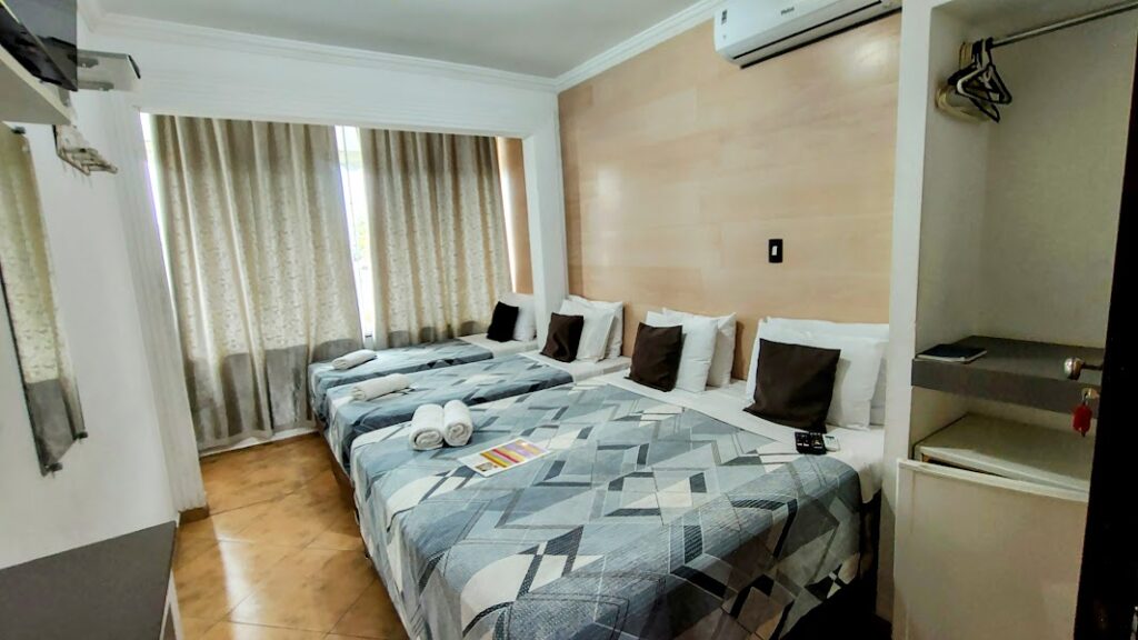 Acomodações completas e aconchegantes na Pousada Pertinho do Mar – Iracemar garantem todo o conforto que sua hospedagem no Guarujá merece. Todas as suítes contam com ar-condicionado split de última geração, cofre seguro para seus pertences, TV LCD com canais a cabo e acesso a streaming, além de frigobar de uso livre para manter bebidas e lanches sempre à mão.